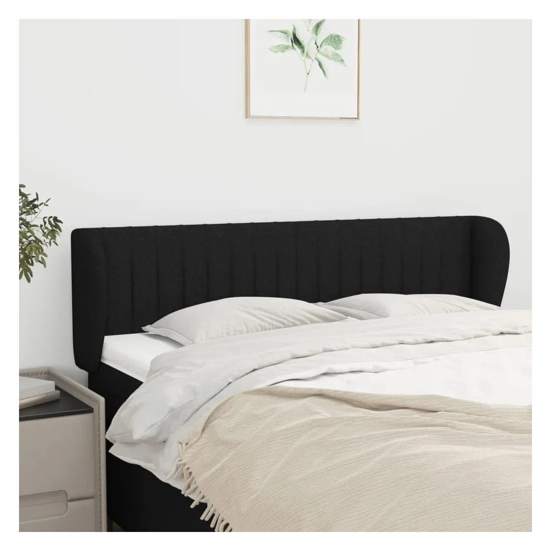 Tête de lit avec oreilles Noir 147x23x78/88 cm Tissu