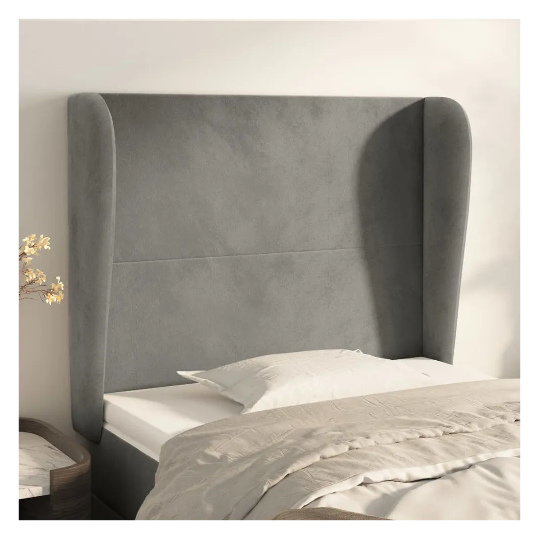 Cette tête de lit avec oreilles classique au design élégant donne à votre cadre de lit un aspect complet et convient à toute chambre à coucher. Velours doux : le velours est un tissu doux et luxueux qui se reconnaît à son tas dense de fibres uniformément coupées qui ont une touche lisse. Le tissu en velours présente un toucher doux distinctif, ce qui le rend confortable au toucher.Des pieds robustes et stables : les pieds en bois assurent la robustesse et la stabilité.Hauteur réglable : la tête de lit est réglable en hauteur selon vos préférences.Excellent soutien : la tête de lit vous offre un excellent soutien du dos lorsque vous êtes assis dans votre lit pour lire ou regarder la télévision. Remarque :La livraison comprend uniquement la tête de lit. Le cadre de lit et le matelas ne sont pas inclus. Vous pouvez consulter notre boutique pour les cadres et matelas assortis.Chaque produit est livré avec un manuel de montage dans la boîte pour un montage facile.