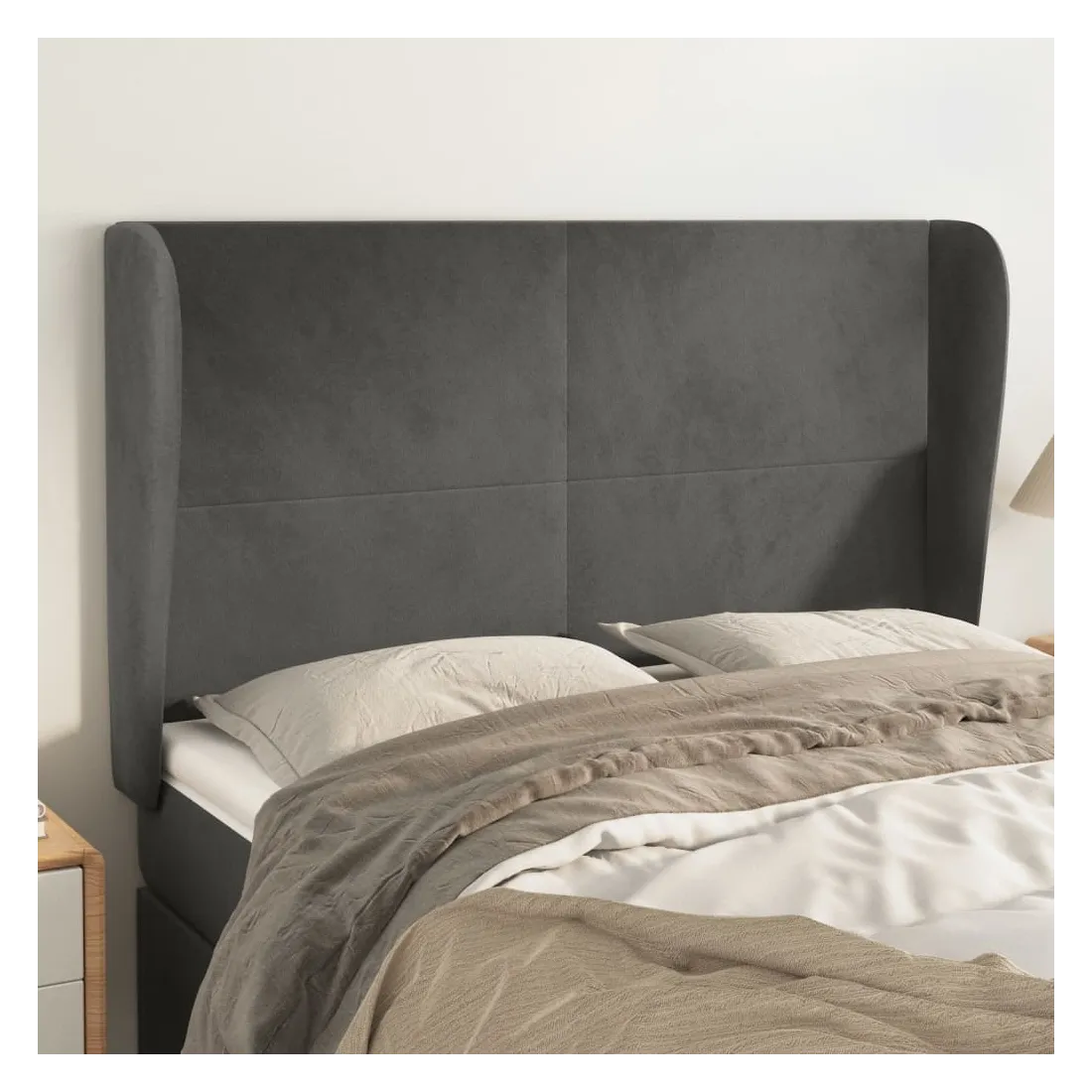 Tête de lit avec oreilles Gris foncé 147x23x118/128 cm Velours