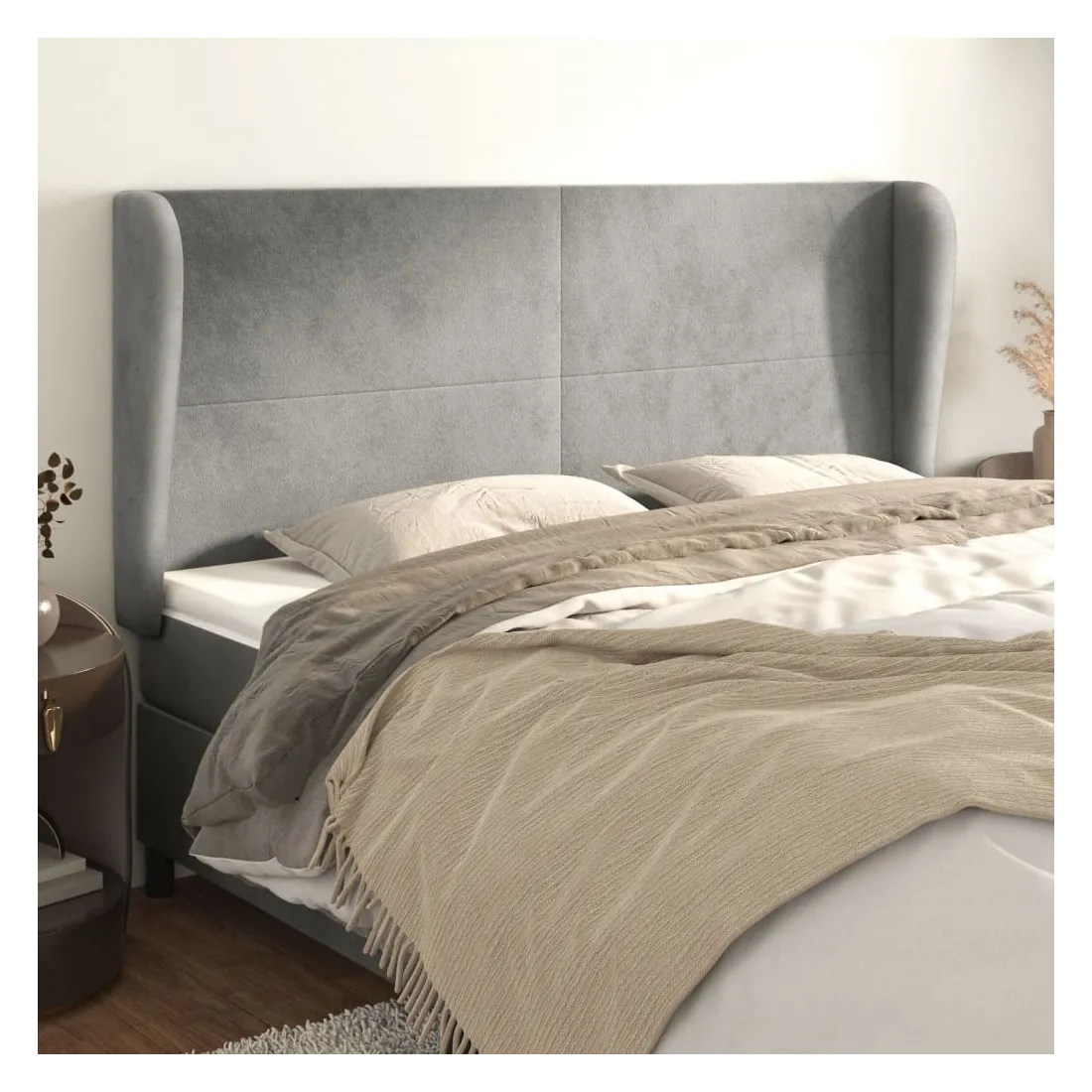 Tête de lit avec oreilles Gris clair 163x23x118/128 cm Velours