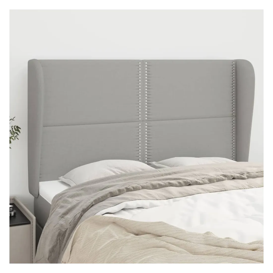 Tête de lit avec oreilles Gris clair 147x23x118/128 cm Tissu