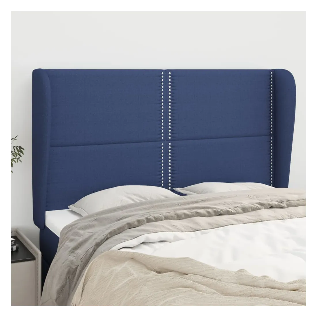Tête de lit avec oreilles Bleu 147x23x118/128 cm Tissu