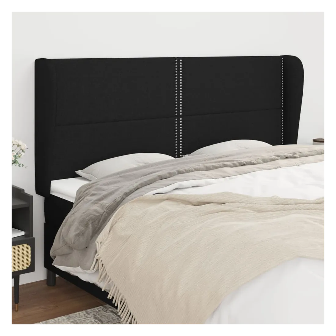 Tête de lit avec oreilles Noir 183x23x118/128 cm Tissu