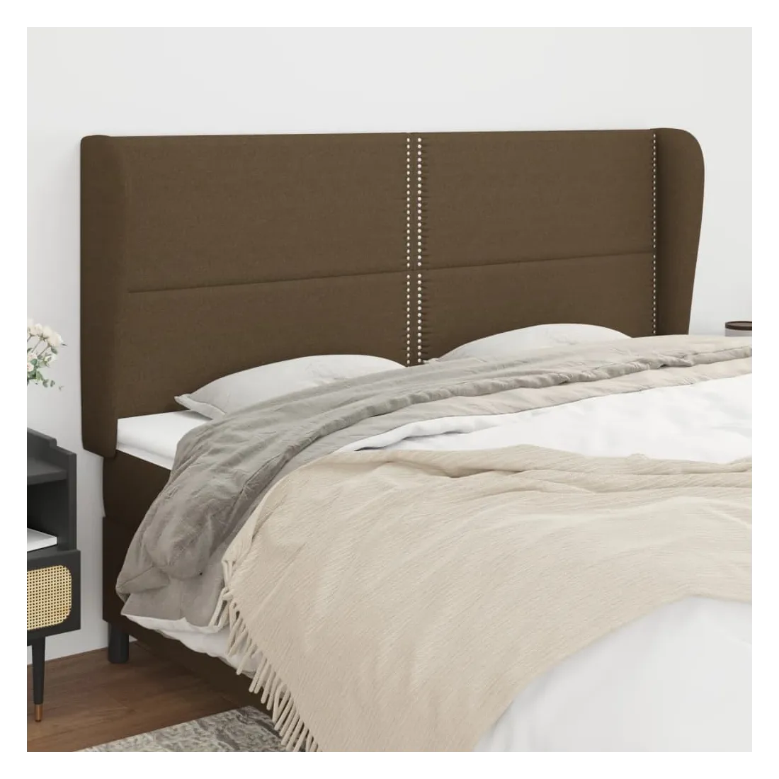 Tête de lit avec oreilles Marron foncé 203x23x118/128 cm Tissu
