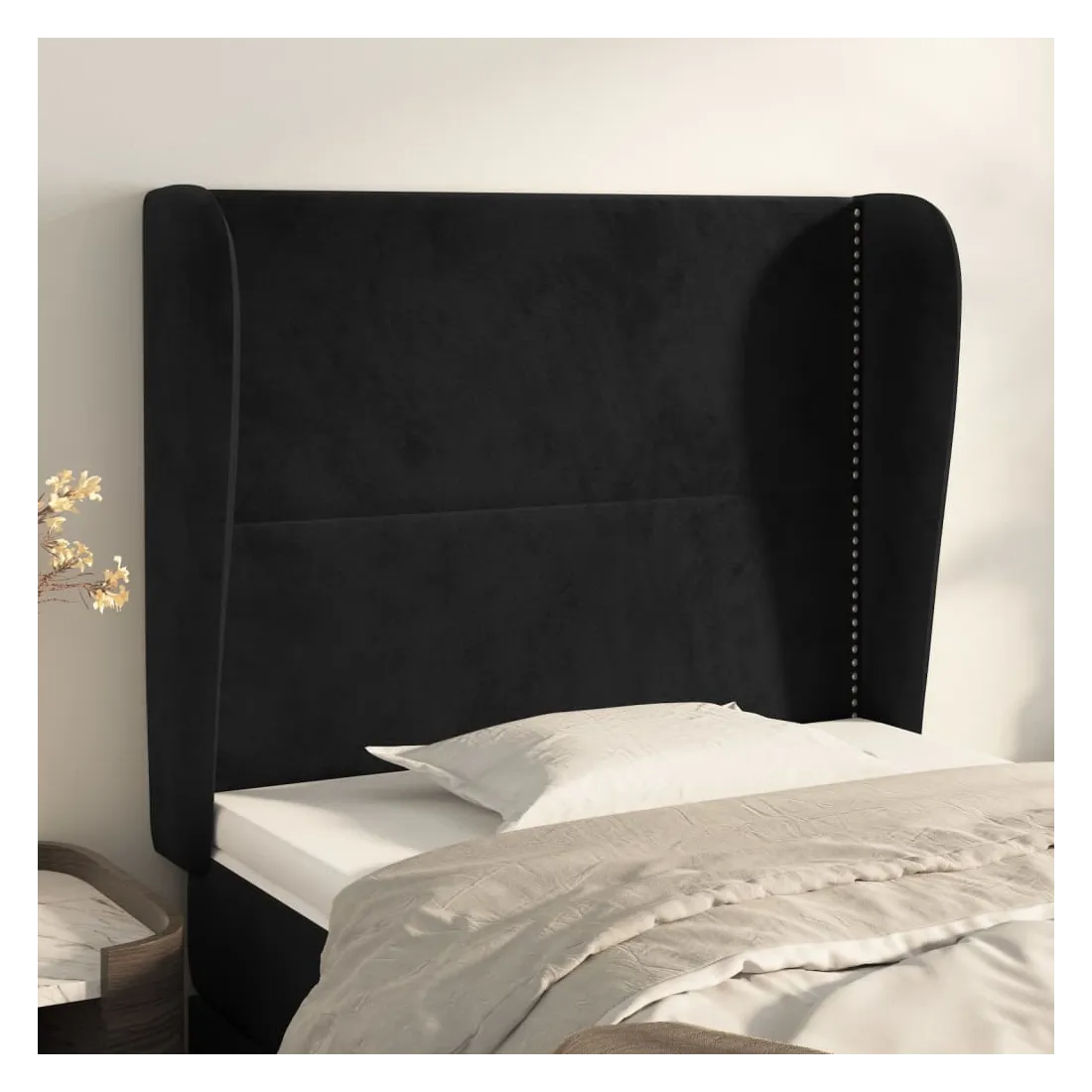 Cette tête de lit avec oreilles classique au design élégant donne à votre cadre de lit un aspect complet et convient à toute chambre à coucher. Velours doux : le velours est un tissu doux et luxueux qui se reconnaît à son tas dense de fibres uniformément coupées qui ont une touche lisse. Le tissu en velours présente un toucher doux distinctif, ce qui le rend confortable au toucher.Des pieds robustes et stables : les pieds en bois assurent la robustesse et la stabilité.Hauteur réglable : la tête de lit est réglable en hauteur selon vos préférences.Excellent soutien : la tête de lit vous offre un excellent soutien du dos lorsque vous êtes assis dans votre lit pour lire ou regarder la télévision. Remarque :La livraison comprend uniquement la tête de lit. Le cadre de lit et le matelas ne sont pas inclus. Vous pouvez consulter notre boutique pour les cadres et matelas assortis.Chaque produit est livré avec un manuel de montage dans la boîte pour un montage facile.