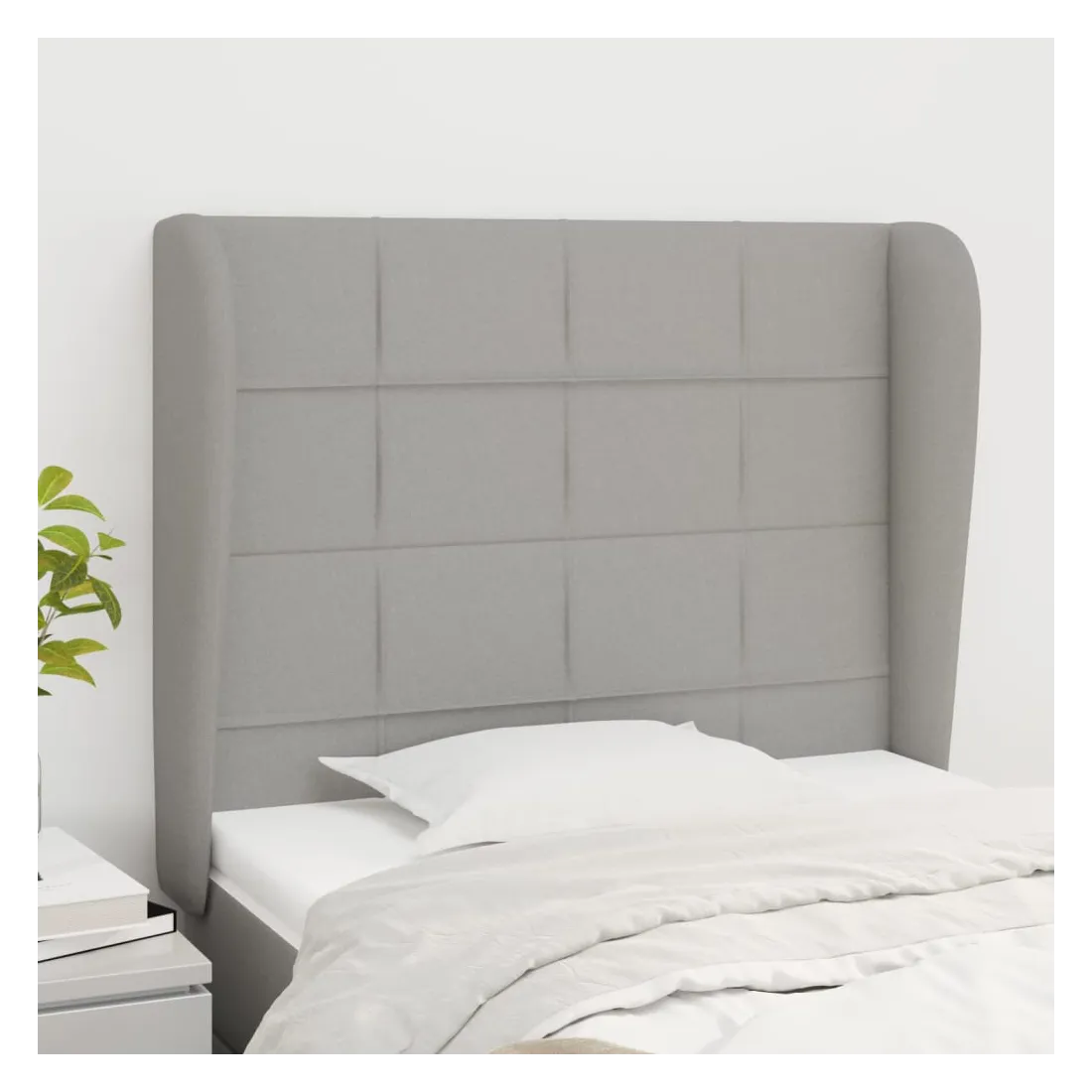Cette tête de lit avec oreilles classique au design élégant donne à votre cadre de lit un aspect complet et convient à toute chambre à coucher. Tissu durable : le tissu présente un aspect simple et épuré, et il est respirant et durable.Des pieds robustes et stables : les pieds en bois assurent la robustesse et la stabilité.Hauteur réglable : la tête de lit est réglable en hauteur selon vos préférences.Excellent soutien : la tête de lit vous offre un excellent soutien du dos lorsque vous êtes assis dans votre lit pour lire ou regarder la télévision. Remarque :La livraison comprend uniquement la tête de lit. Le cadre de lit et le matelas ne sont pas inclus. Vous pouvez consulter notre boutique pour les cadres et matelas assortis.Chaque produit est livré avec un manuel de montage dans la boîte pour un montage facile.