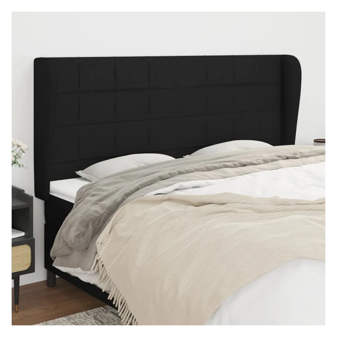 Tête de lit avec oreilles Noir 203x23x118/128 cm Tissu