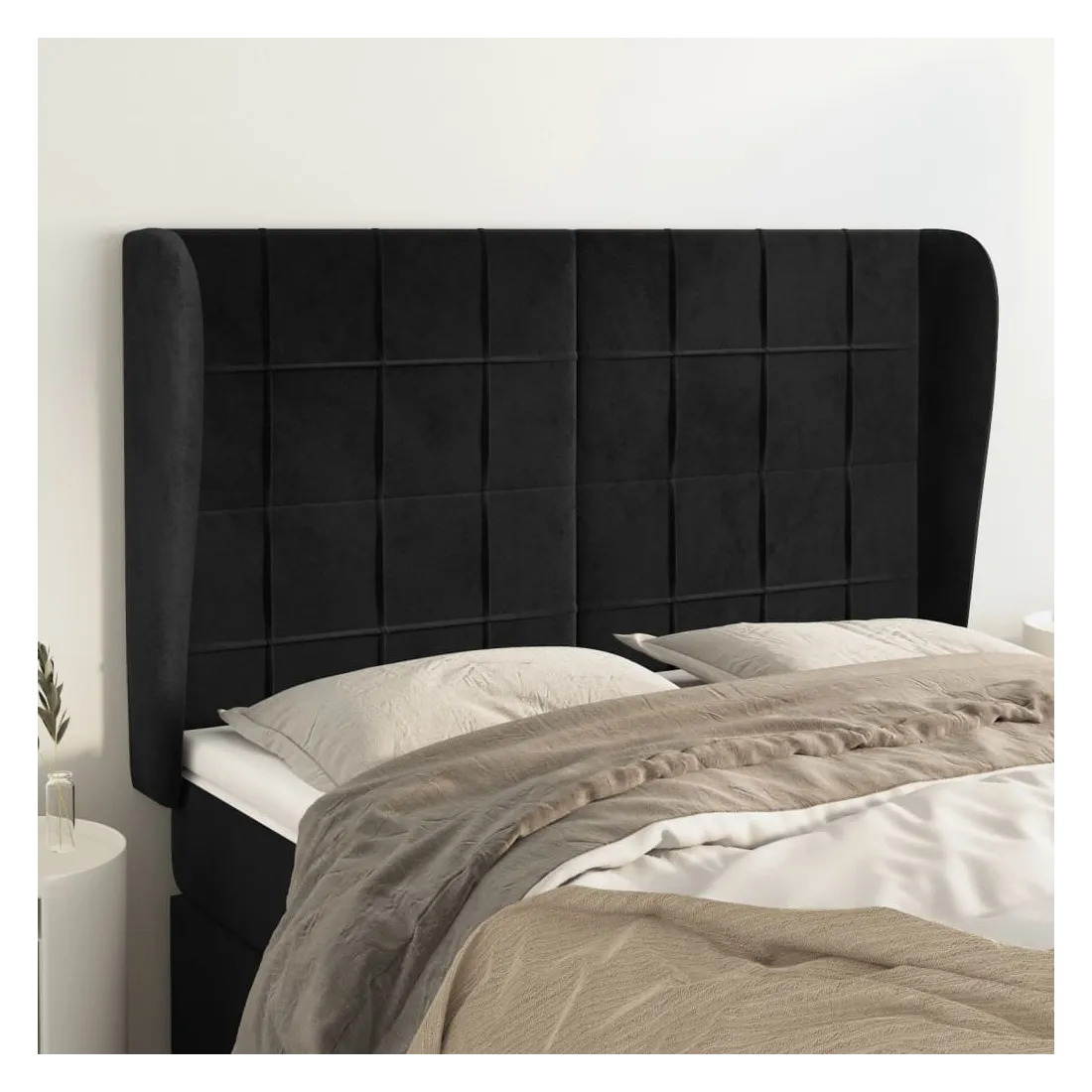 Tête de lit avec oreilles Noir 147x23x118/128 cm Velours
