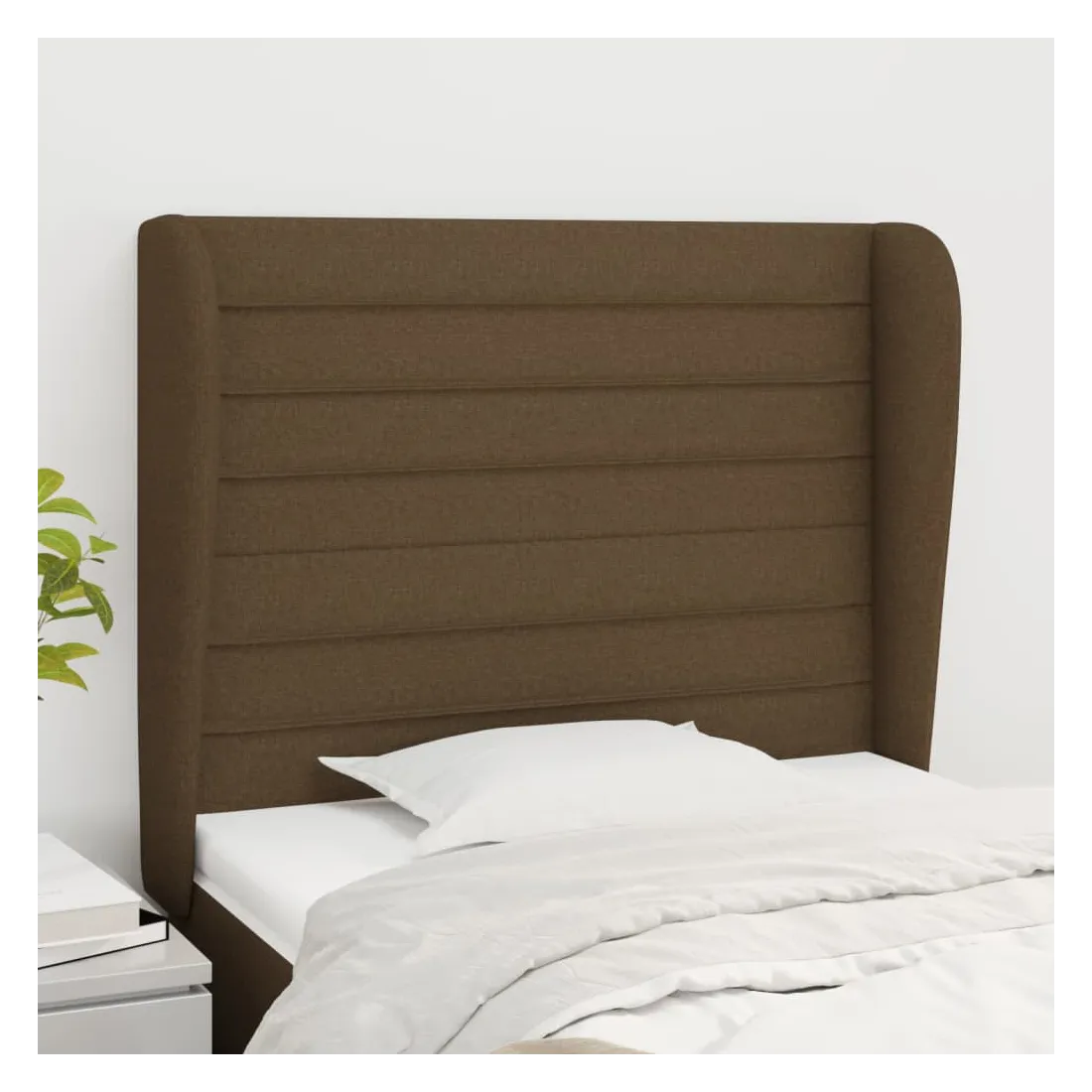 Tête de lit avec oreilles Marron foncé 83x23x118/128 cm Tissu