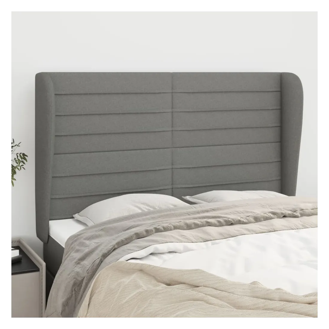 Tête de lit avec oreilles Gris foncé 147x23x118/128 cm Tissu