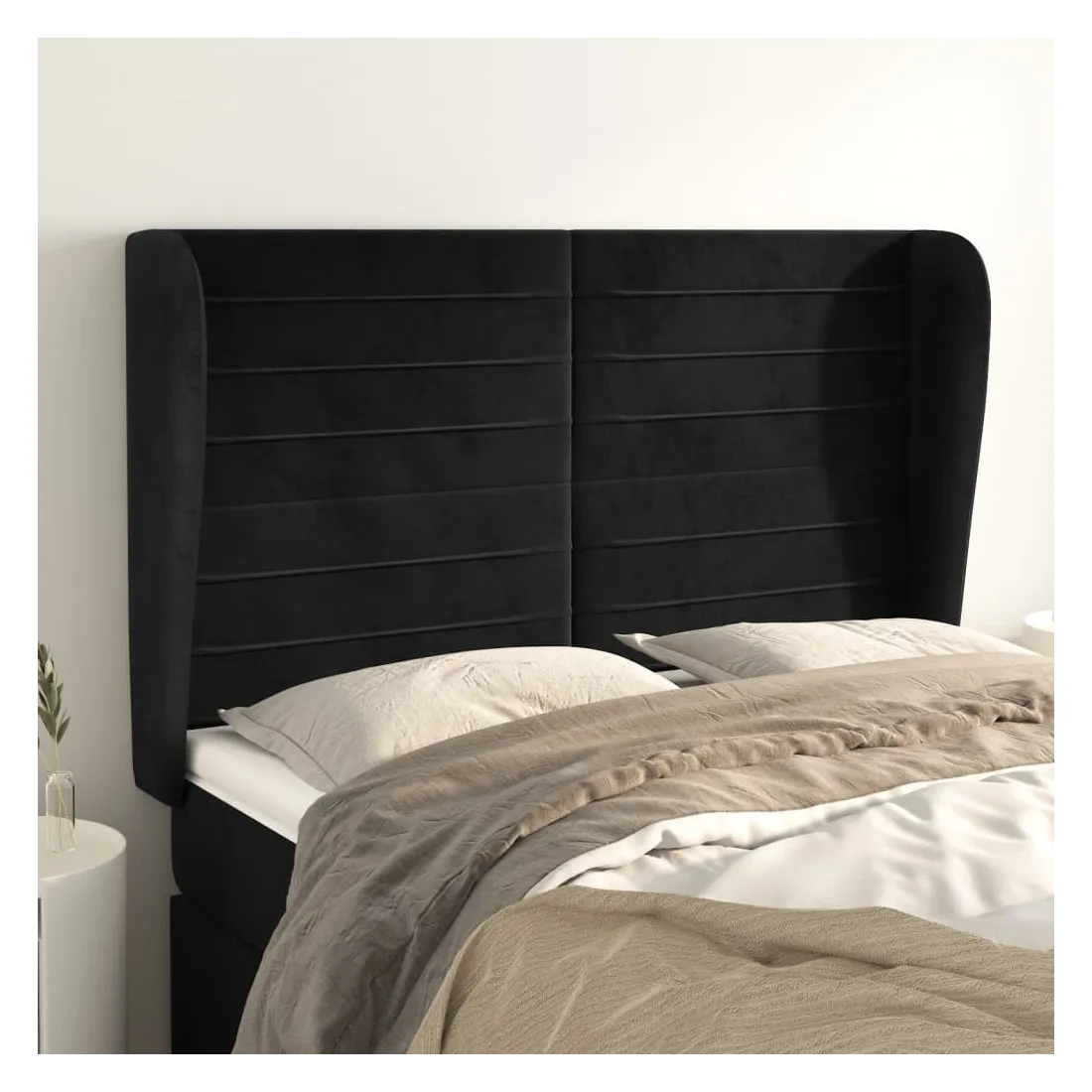 Tête de lit avec oreilles Noir 147x23x118/128 cm Velours