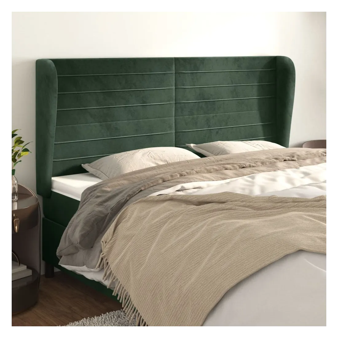 Cette tête de lit avec oreilles classique au design élégant donne à votre cadre de lit un aspect complet et convient à toute chambre à coucher. Velours doux : le velours est un tissu doux et luxueux qui se reconnaît à son tas dense de fibres uniformément coupées qui ont une touche lisse. Le tissu en velours présente un toucher doux distinctif, ce qui le rend confortable au toucher.Pieds robustes et stables : les pieds en bois assurent la robustesse et la stabilité.Hauteur réglable : la tête de lit est réglable en hauteur selon vos préférences.Excellent soutien : la tête de lit vous offre un excellent soutien du dos lorsque vous êtes assis dans votre lit pour lire ou regarder la télévision. Remarque :La livraison comprend uniquement la tête de lit. Le cadre de lit et le matelas ne sont pas inclus. Vous pouvez consulter notre boutique pour les cadres et matelas assortis.Chaque produit est livré avec un manuel de montage dans la boîte pour un montage facile.