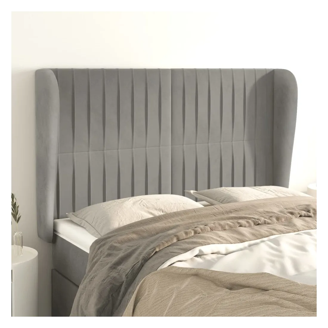 Cette tête de lit avec oreilles classique au design élégant donne à votre cadre de lit un aspect complet et convient à toute chambre à coucher. Velours doux : le velours est un tissu doux et luxueux qui se reconnaît à son tas dense de fibres uniformément coupées qui ont une touche lisse. Le tissu en velours présente un toucher doux distinctif, ce qui le rend confortable au toucher.Pieds robustes et stables : les pieds en bois assurent la robustesse et la stabilité.Hauteur réglable : la tête de lit est réglable en hauteur selon vos préférences.Excellent soutien : la tête de lit vous offre un excellent soutien du dos lorsque vous êtes assis dans votre lit pour lire ou regarder la télévision. Remarque :La livraison comprend uniquement la tête de lit. Le cadre de lit et le matelas ne sont pas inclus. Vous pouvez consulter notre boutique pour les cadres et matelas assortis.Chaque produit est livré avec un manuel de montage dans la boîte pour un montage facile.