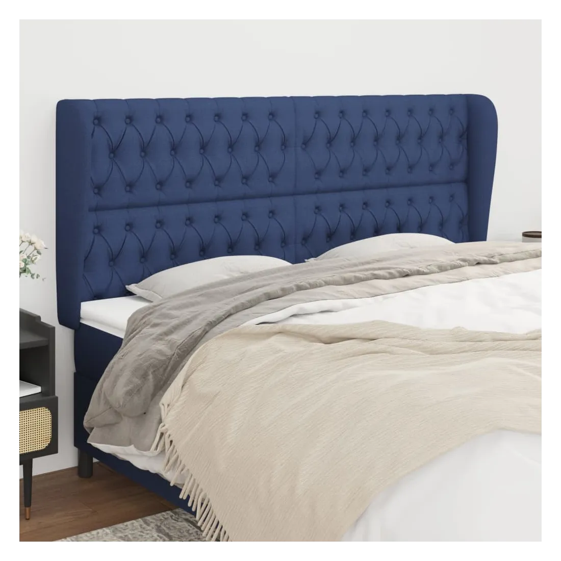 Tête de lit avec oreilles Bleu 203x23x118/128 cm Tissu