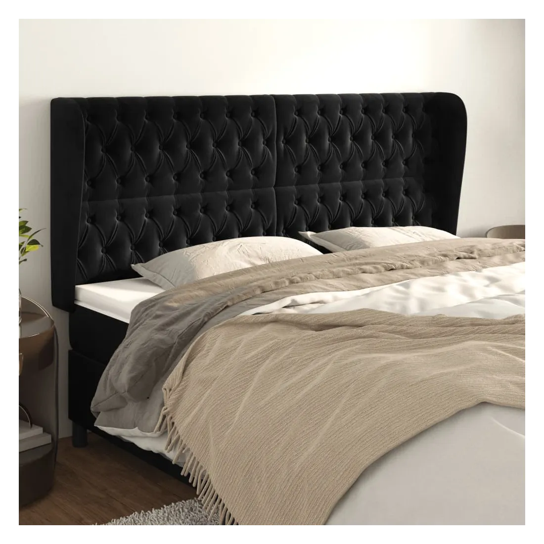 Cette tête de lit avec oreilles classique au design élégant donne à votre cadre de lit un aspect complet et convient à toute chambre à coucher. Velours doux : le velours est un tissu doux et luxueux qui se reconnaît à son tas dense de fibres uniformément coupées qui ont une touche lisse. Le tissu en velours présente un toucher doux distinctif, ce qui le rend confortable au toucher.Pieds robustes et stables : les pieds en bois assurent la robustesse et la stabilité.Hauteur réglable : la tête de lit est réglable en hauteur selon vos préférences.Excellent soutien : la tête de lit vous offre un excellent soutien du dos lorsque vous êtes assis dans votre lit pour lire ou regarder la télévision. Remarque :La livraison comprend uniquement la tête de lit. Le cadre de lit et le matelas ne sont pas inclus. Vous pouvez consulter notre boutique pour les cadres et matelas assortis.Chaque produit est livré avec un manuel de montage dans la boîte pour un montage facile.