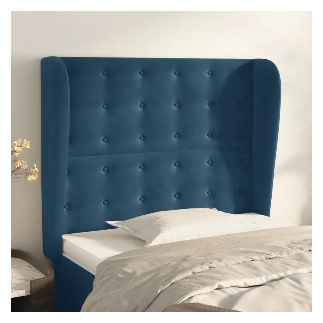 Tête de lit avec oreilles Bleu foncé 83x23x118/128 cm Velours