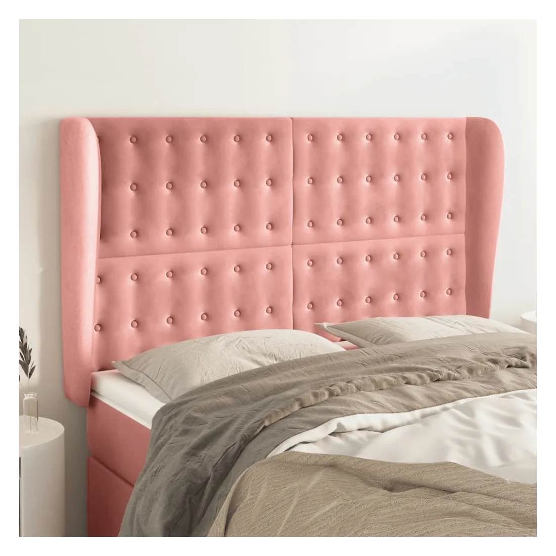 Cette tête de lit avec oreilles classique au design élégant donne à votre cadre de lit un aspect complet et convient à toute chambre à coucher. Velours doux : le velours est un tissu doux et luxueux qui se reconnaît à son tas dense de fibres uniformément coupées qui ont une touche lisse. Le tissu en velours présente un toucher doux distinctif, ce qui le rend confortable au toucher.Pieds robustes et stables : les pieds en bois assurent la robustesse et la stabilité.Hauteur réglable : la tête de lit est réglable en hauteur selon vos préférences.Excellent soutien : la tête de lit vous offre un excellent soutien du dos lorsque vous êtes assis dans votre lit pour lire ou regarder la télévision. Remarque :La livraison comprend uniquement la tête de lit. Le cadre de lit et le matelas ne sont pas inclus. Vous pouvez consulter notre boutique pour les cadres et matelas assortis.Chaque produit est livré avec un manuel de montage dans la boîte pour un montage facile.