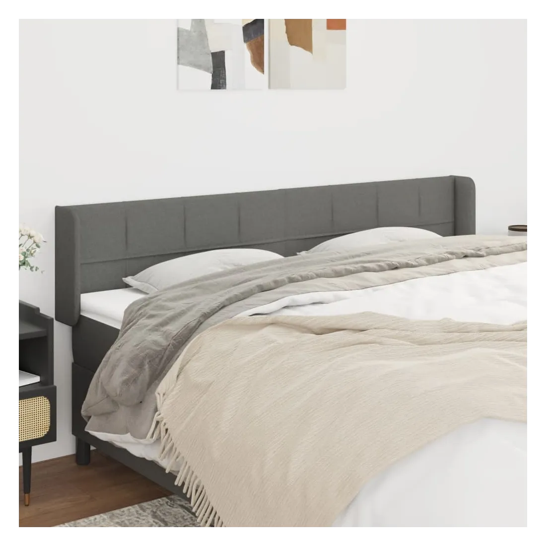 Cette tête de lit avec oreilles classique au design élégant donne à votre cadre de lit un aspect complet et convient à toute chambre à coucher. Tissu durable : le tissu présente un aspect simple et épuré, et il est respirant et durable.Pieds robustes et stables : les pieds en bois assurent la robustesse et la stabilité.Hauteur réglable : la tête de lit est réglable en hauteur selon vos préférences.Excellent soutien : la tête de lit vous offre un excellent soutien du dos lorsque vous êtes assis dans votre lit pour lire ou regarder la télévision. Remarque :La livraison comprend uniquement la tête de lit. Le cadre de lit et le matelas ne sont pas inclus. Vous pouvez consulter notre boutique pour les cadres et matelas assortis.Chaque produit est livré avec un manuel de montage dans la boîte pour un montage facile.