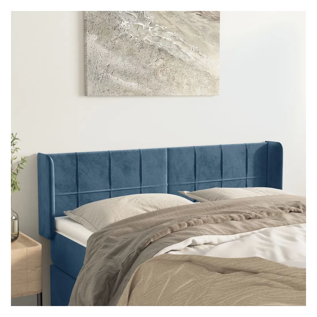 Tête de lit avec oreilles Bleu foncé 147x16x78/88 cm Velours