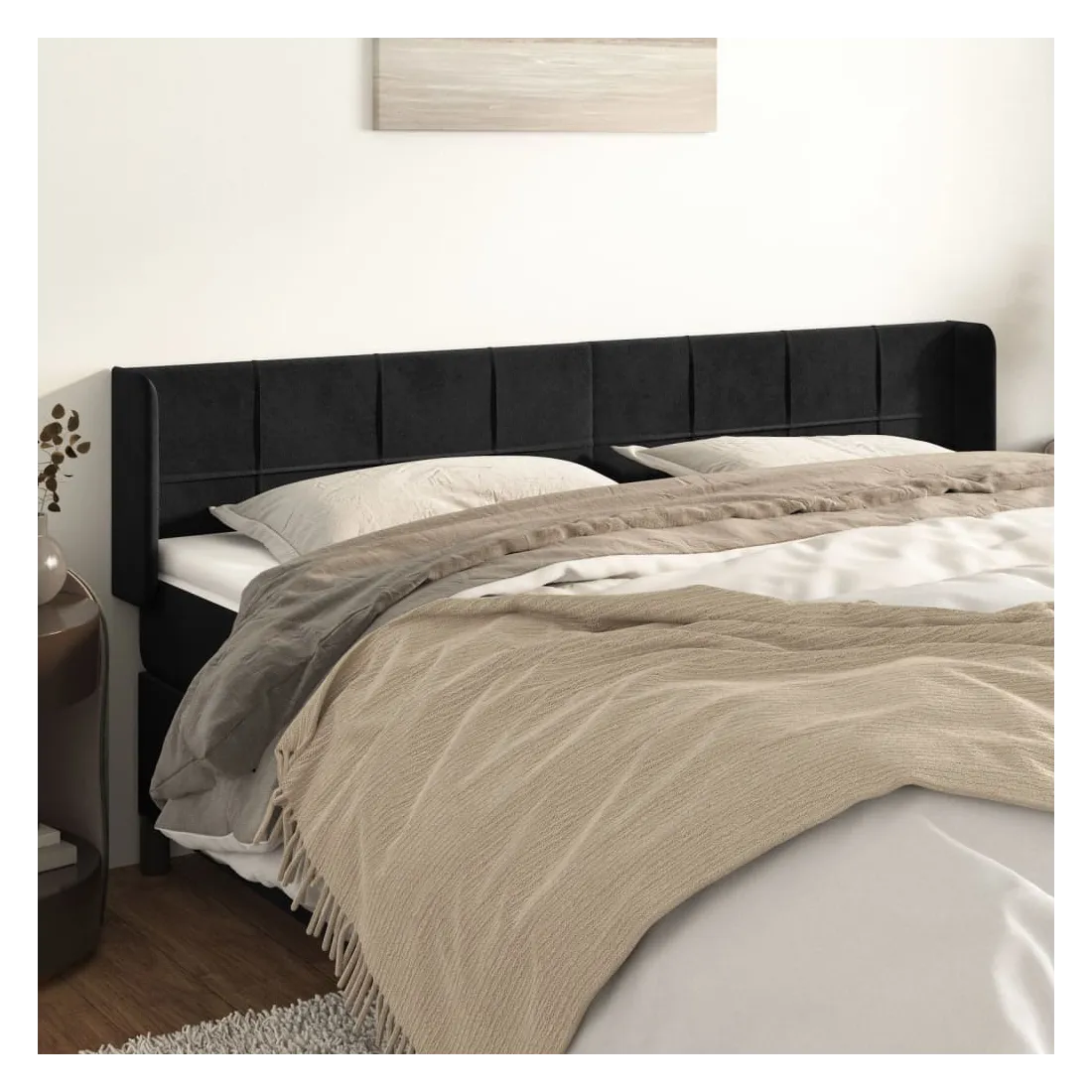 Tête de lit avec oreilles Noir 163x16x78/88 cm Velours