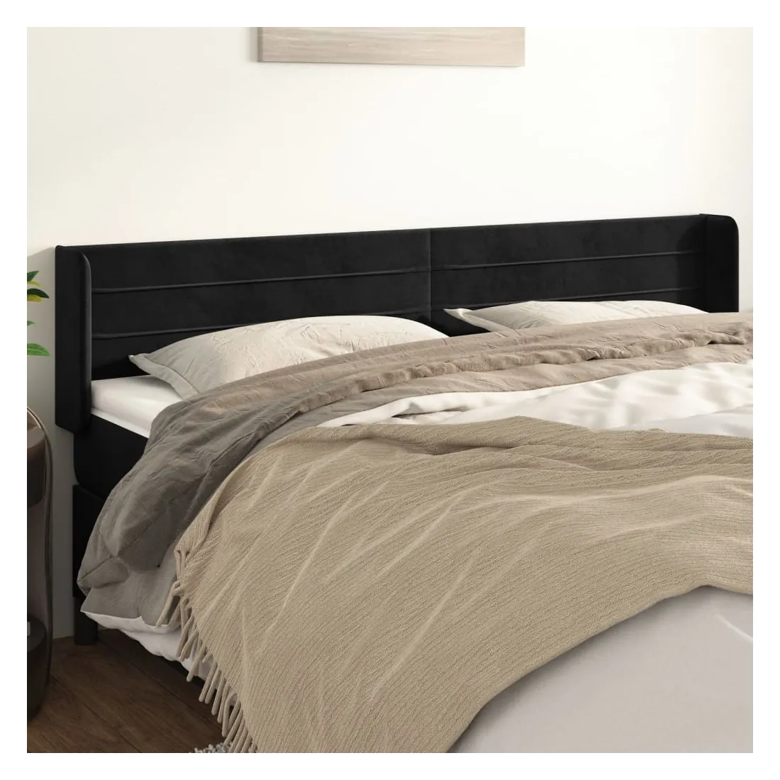 Cette tête de lit avec oreilles classique au design élégant donne à votre cadre de lit un aspect complet et convient à toute chambre à coucher. Velours doux : le velours est un tissu doux et luxueux qui se reconnaît à son tas dense de fibres uniformément coupées qui ont une touche lisse. Le tissu en velours présente un toucher doux distinctif, ce qui le rend confortable au toucher.Pieds robustes et stables : les pieds en bois assurent la robustesse et la stabilité.Hauteur réglable : la tête de lit est réglable en hauteur selon vos préférences.Excellent soutien : la tête de lit vous offre un excellent soutien du dos lorsque vous êtes assis dans votre lit pour lire ou regarder la télévision. Remarque :La livraison comprend uniquement la tête de lit. Le cadre de lit et le matelas ne sont pas inclus. Vous pouvez consulter notre boutique pour les cadres et matelas assortis.Chaque produit est livré avec un manuel de montage dans la boîte pour un montage facile.