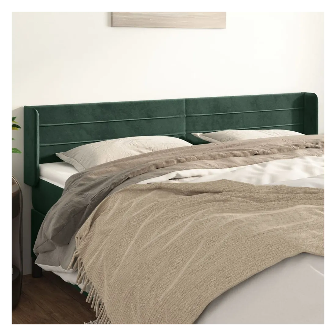 Tête de lit avec oreilles Vert foncé 203x16x78/88 cm Velours