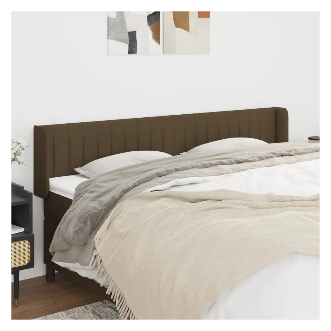 Tête de lit avec oreilles Marron Foncé 183x16x78/88 cm Tissu