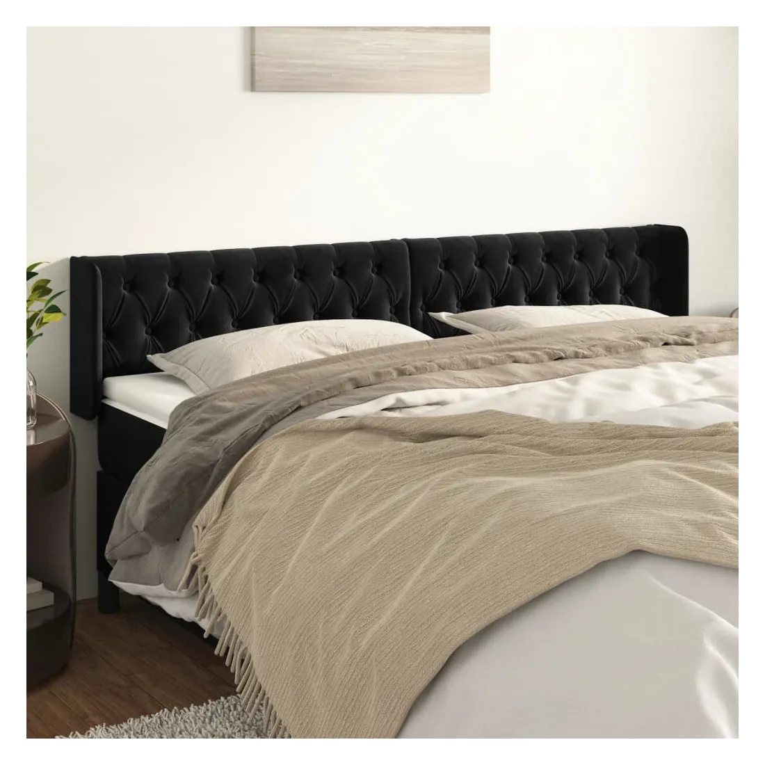 Tête de lit avec oreilles Noir 183x16x78/88 cm Velours
