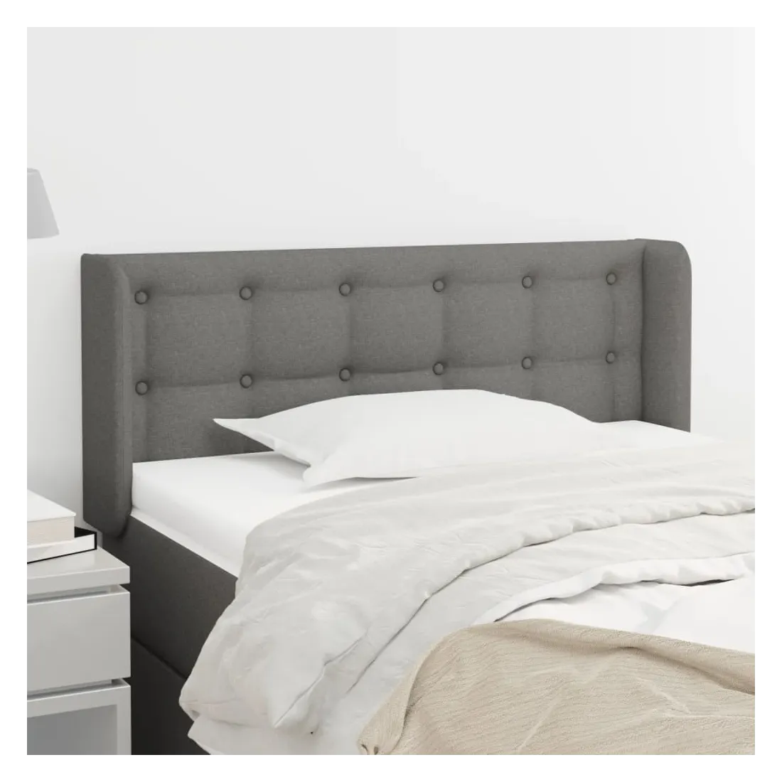 Cette tête de lit avec oreilles classique au design élégant donne à votre cadre de lit un aspect complet et convient à toute chambre à coucher. Tissu durable : le tissu présente un aspect simple et épuré, et il est respirant et durable.Pieds robustes et stables : les pieds en bois assurent la robustesse et la stabilité.Hauteur réglable : la tête de lit est réglable en hauteur selon vos préférences.Excellent soutien : la tête de lit vous offre un excellent soutien du dos lorsque vous êtes assis dans votre lit pour lire ou regarder la télévision. Remarque :La livraison comprend uniquement la tête de lit. Le cadre de lit et le matelas ne sont pas inclus. Vous pouvez consulter notre boutique pour les cadres et matelas assortis.Chaque produit est livré avec un manuel de montage dans la boîte pour un montage facile.