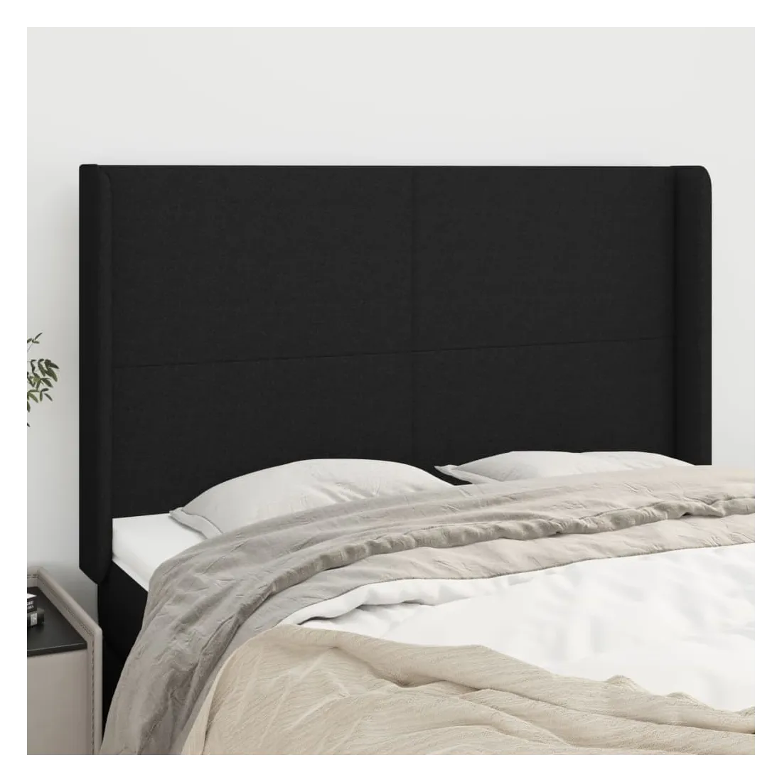 Tête de lit avec oreilles Noir 147x16x118/128 cm Tissu