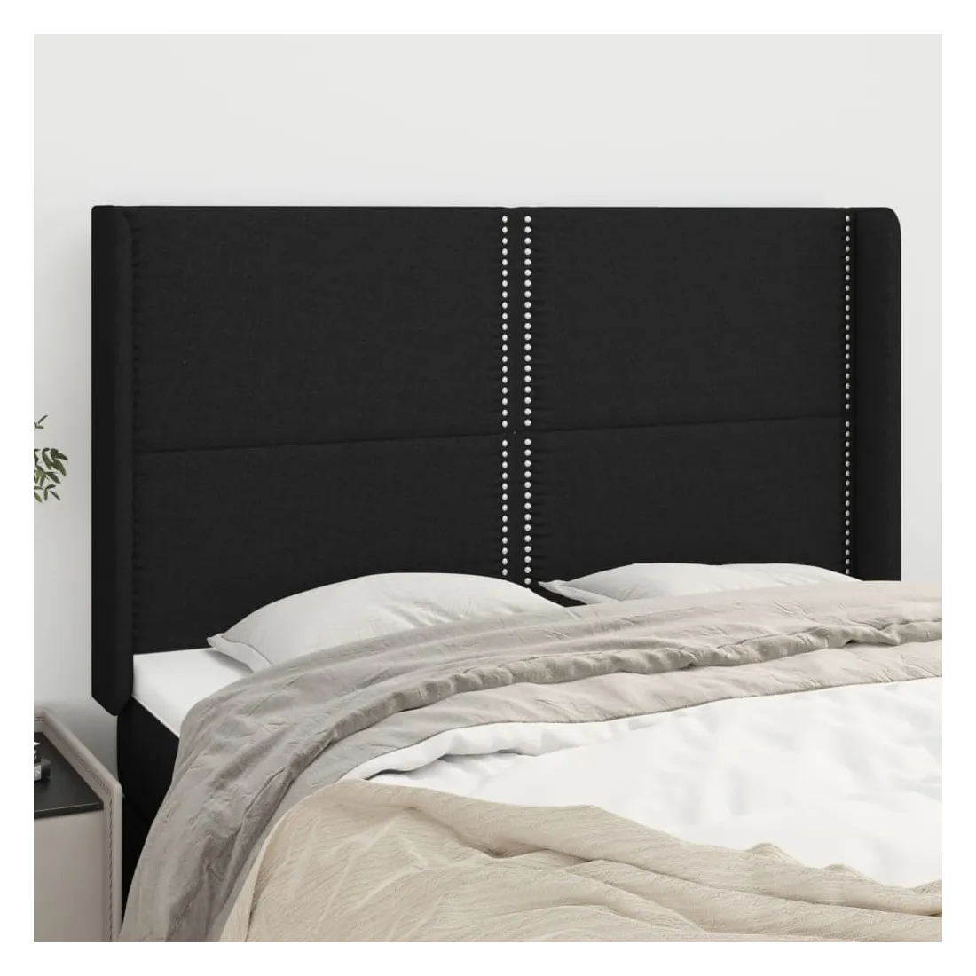 Tête de lit avec oreilles Noir 147x16x118/128 cm Tissu
