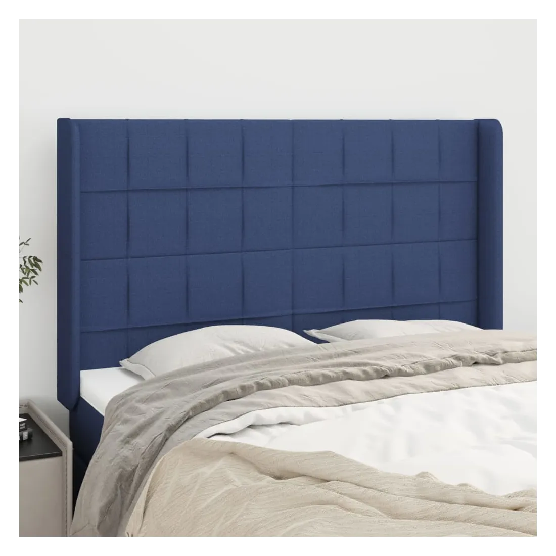 Tête de lit avec oreilles Bleu 147x16x118/128 cm Tissu