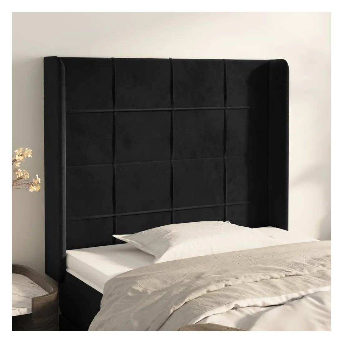 Tête de lit avec oreilles Noir 83x16x118/128 cm Velours
