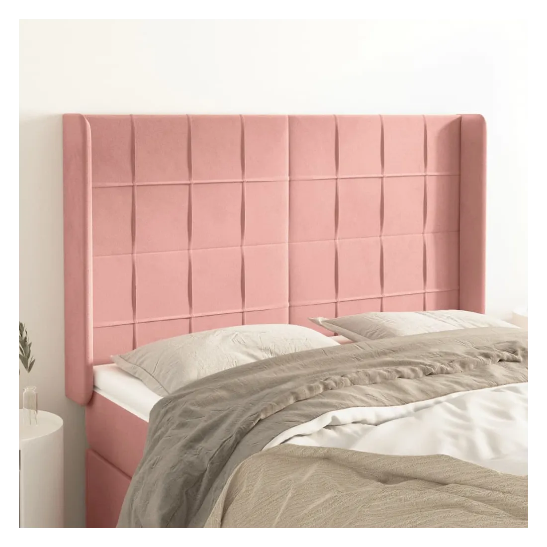 Tête de lit avec oreilles Rose 147x16x118/128 cm Velours