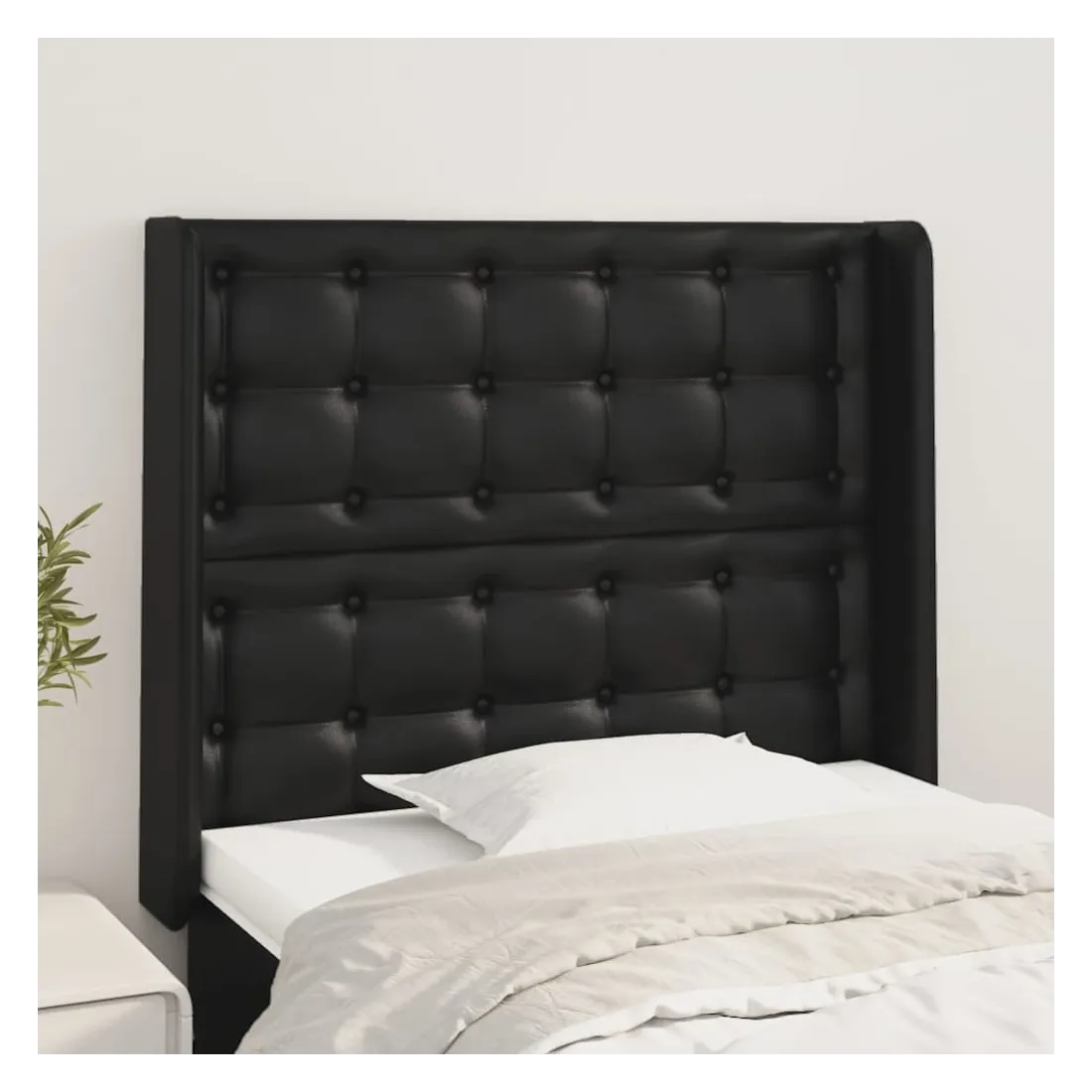 Cette tête de lit avec oreilles classique au design élégant donne à votre cadre de lit un aspect complet et convient à toute chambre à coucher. Similicuir durable : le similicuir de qualité supérieure est un matériau très durable. Il est résistant aux taches, ce qui le rend facile à nettoyer avec un chiffon humide. La surface lisse donne également un aspect luxueux et la beauté du cuir véritable.Pieds robustes et stables : les pieds en bois assurent la robustesse et la stabilité.Hauteur réglable : la tête de lit est réglable en hauteur selon vos préférences.Excellent soutien : la tête de lit vous offre un excellent soutien du dos lorsque vous êtes assis dans votre lit pour lire ou regarder la télévision. Remarque :La livraison comprend uniquement la tête de lit. Le cadre de lit et le matelas ne sont pas inclus. Vous pouvez consulter notre boutique pour les cadres et matelas assortis.Chaque produit est livré avec un manuel de montage dans la boîte pour un montage facile.
