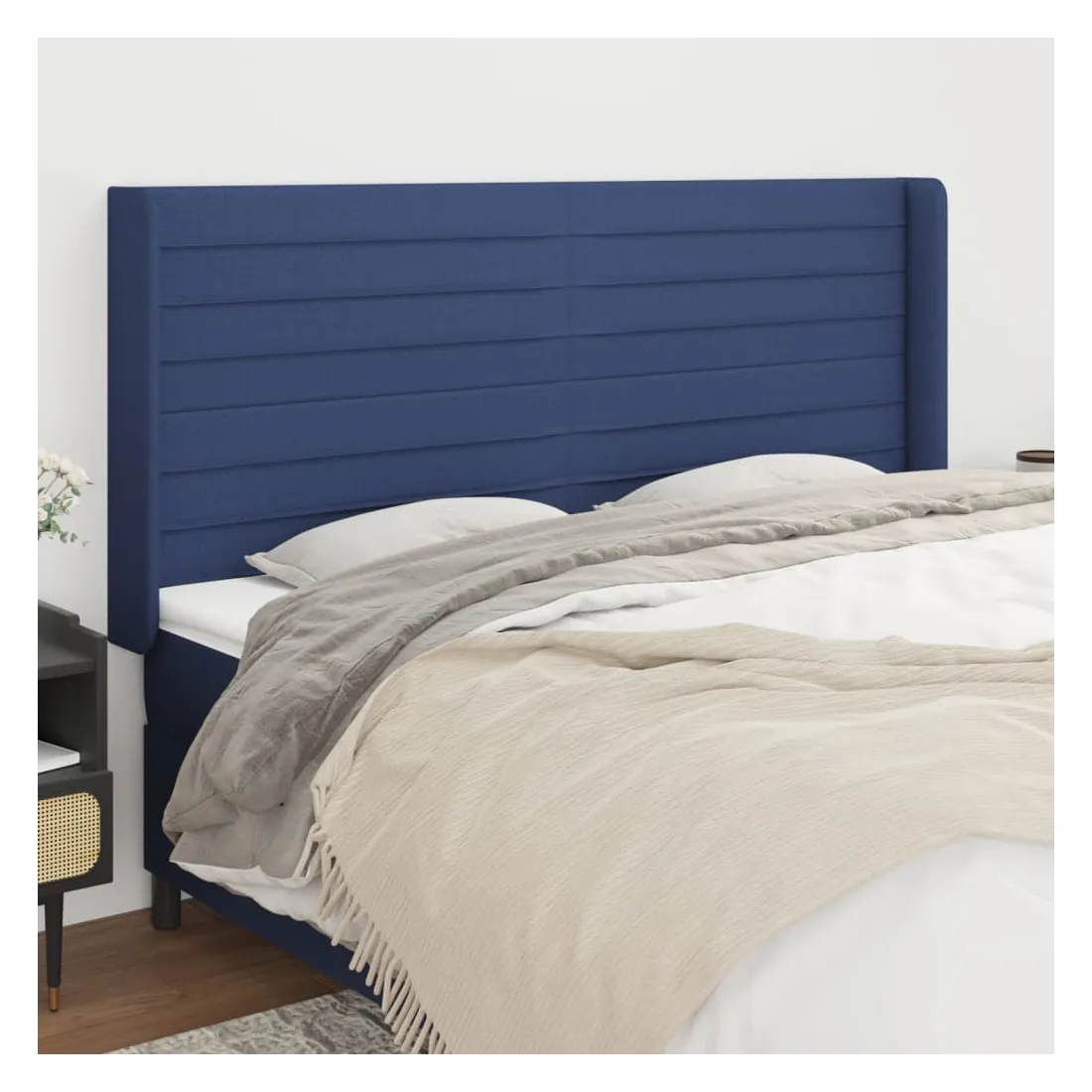 Tête de lit avec oreilles Bleu 163x16x118/128 cm Tissu