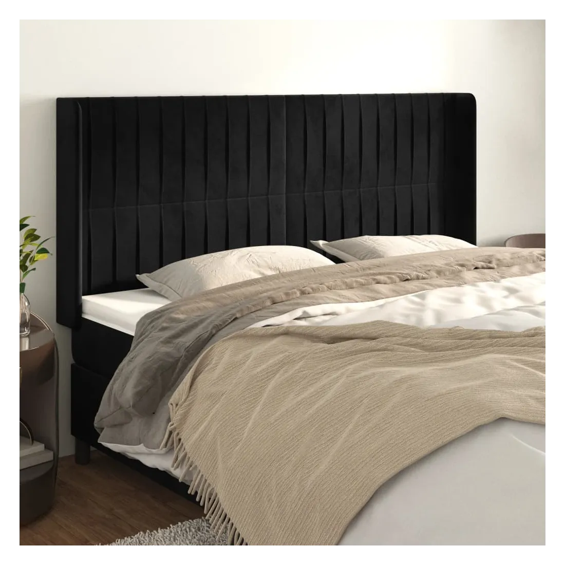 Tête de lit avec oreilles Noir 203x16x118/128 cm Velours