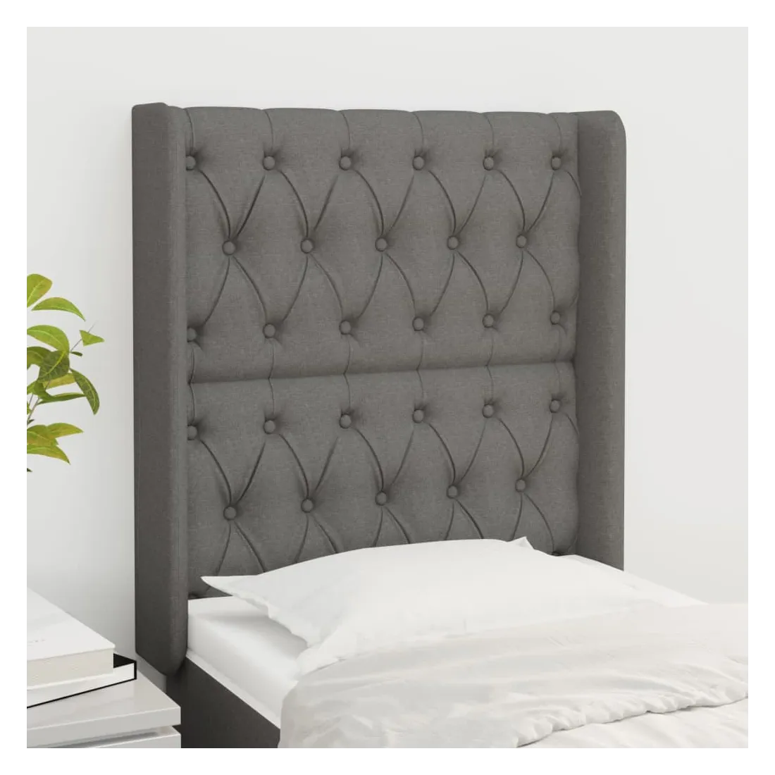Tête de lit avec oreilles Gris foncé 83x16x118/128 cm Tissu