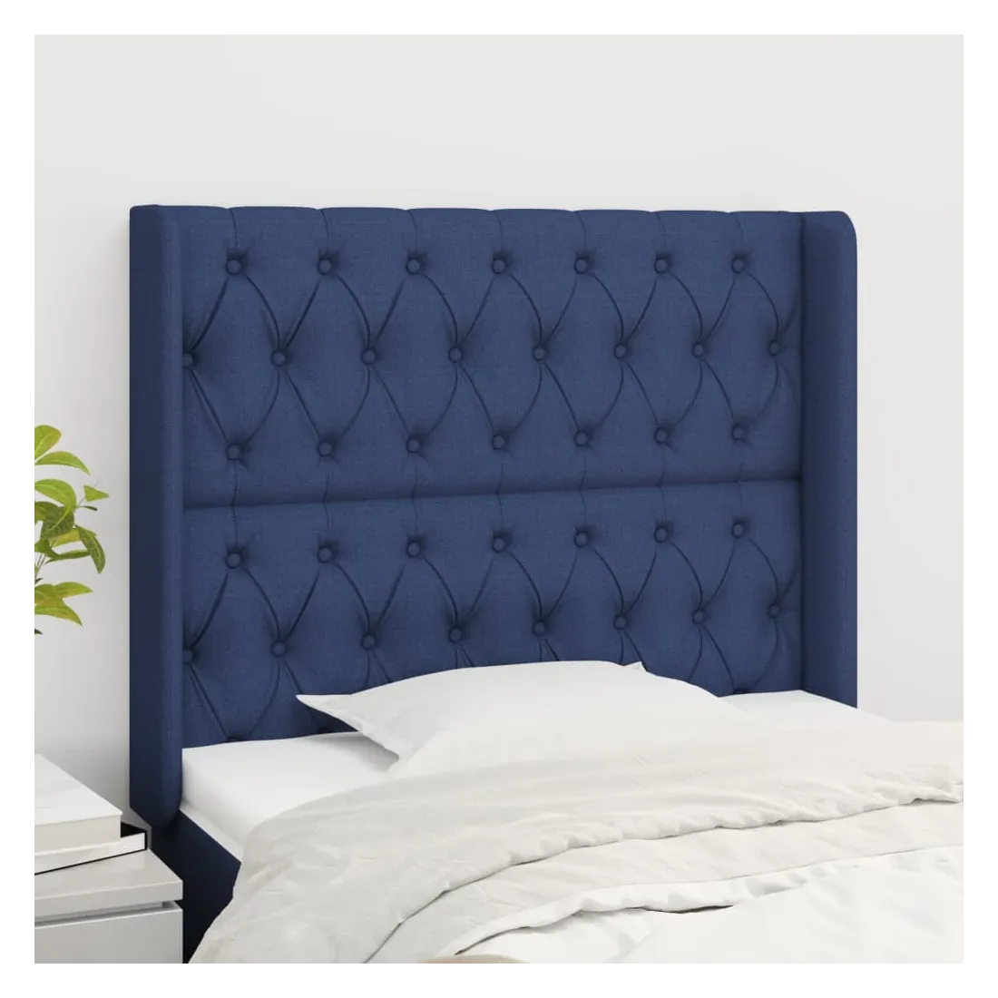 Tête de lit avec oreilles Bleu 103x16x118/128 cm Tissu