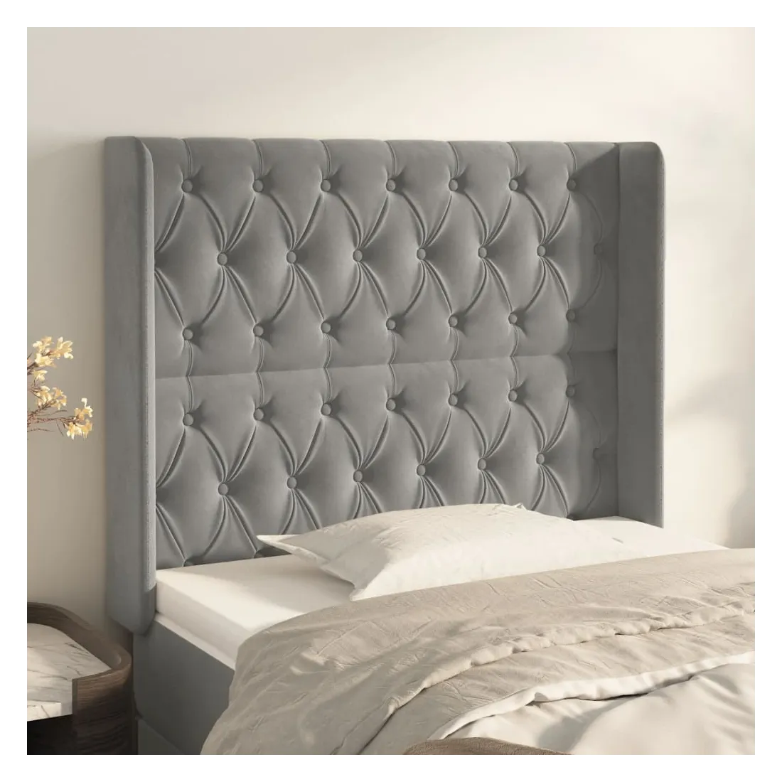 Tête de lit avec oreilles Gris clair 103x16x118/128 cm Velours
