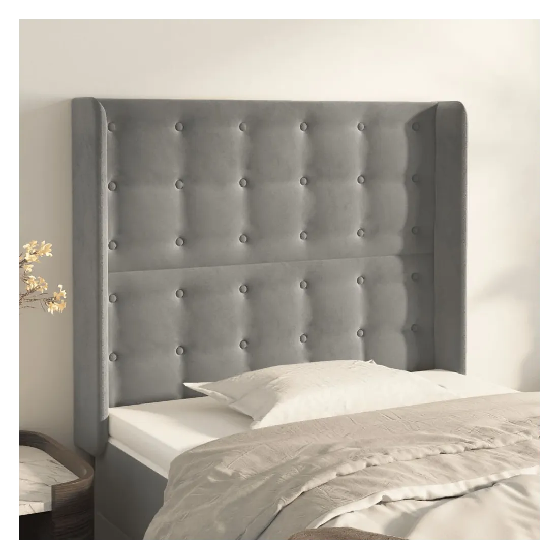 Tête de lit avec oreilles Gris clair 83x16x118/128 cm Velours