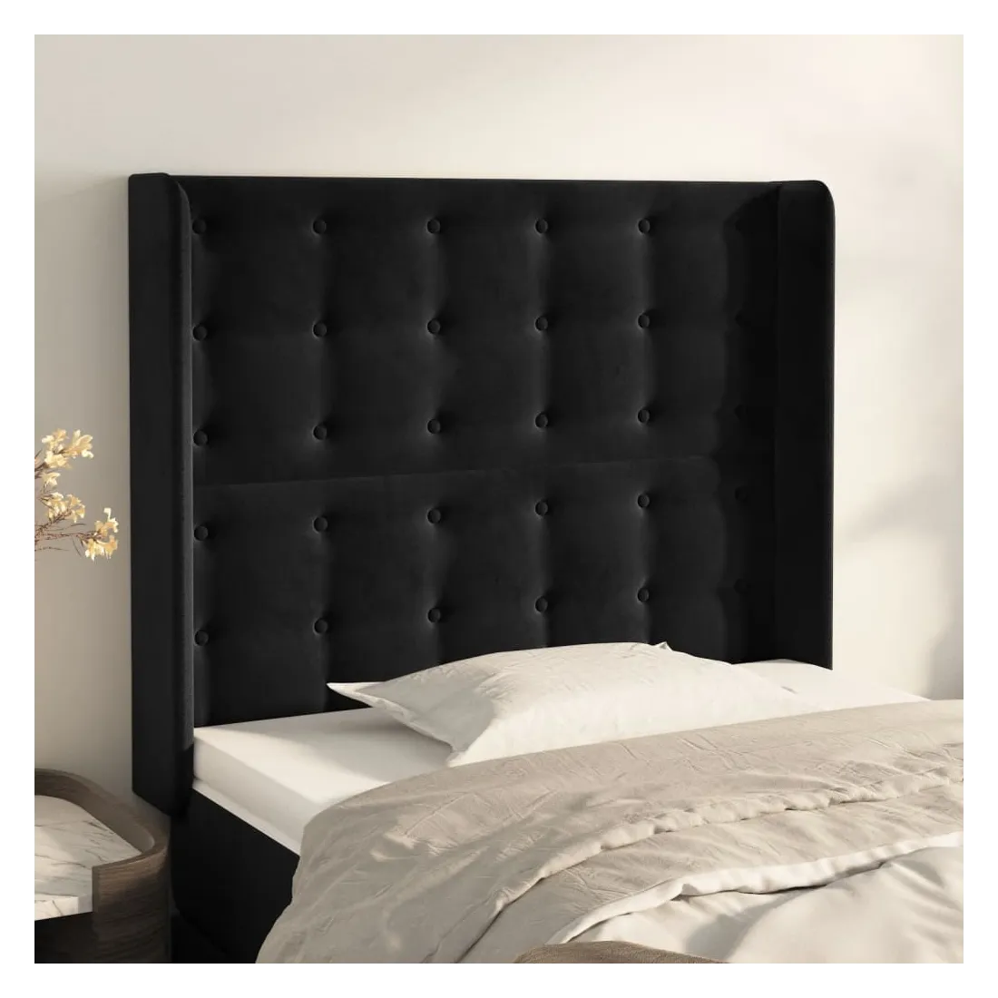 Tête de lit avec oreilles Noir 93x16x118/128 cm Velours