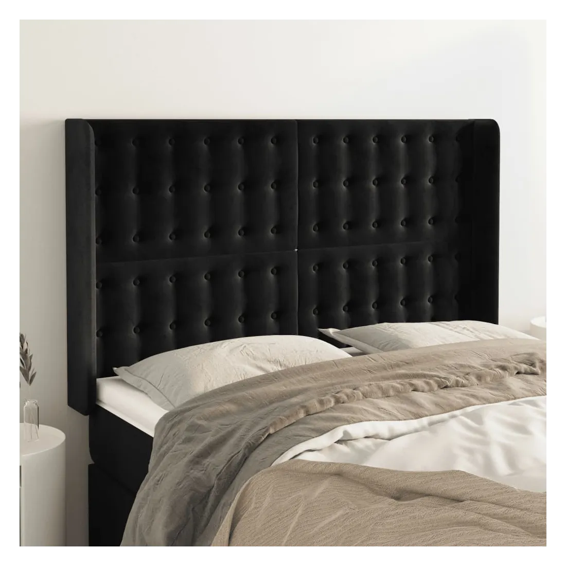 Tête de lit avec oreilles Noir 147x16x118/128 cm Velours