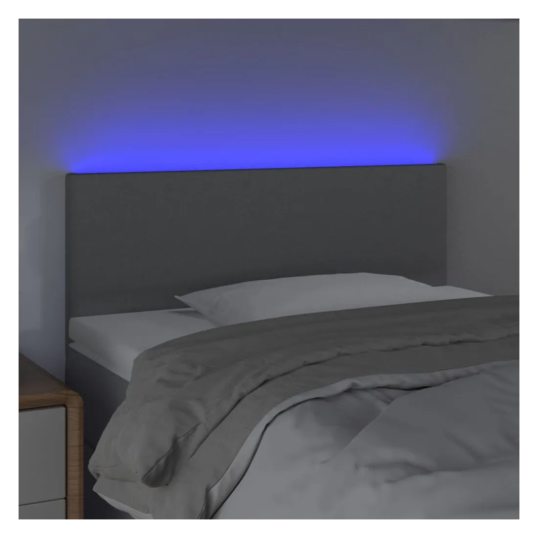 Cette tête de lit à LED classique, au design élégant, donne à votre cadre de lit une touche de modernité étonnante et convient parfaitement à toute chambre à coucher. Tissu durable : le tissu présente un aspect simple et épuré, et il est respirant et durable. LED colorée : apportez de l'éclairage dans l'obscurité avec des lumières LED colorées ! Hauteur réglable : la tête de lit est réglable en hauteur selon vos préférences. Excellent soutien : la tête de lit vous offre un excellent soutien du dos lorsque vous êtes assis dans votre lit pour lire ou regarder la télévision. Bande à LED découpable : cette bande à LED flexible peut être ajustée en longueur. Le symbole des ciseaux indique où la bande peut être coupée en toute sécurité sans l'endommager. Remarque : Seule la partie avec un sy