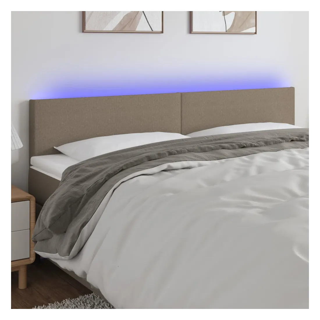 Cette tête de lit à LED classique, au design élégant, donne à votre cadre de lit une touche de modernité étonnante et convient parfaitement à toute chambre à coucher. Tissu durable : le tissu présente un aspect simple et épuré, et il est respirant et durable.LED colorée : apportez de l'éclairage dans l'obscurité avec des lumières LED colorées !Hauteur réglable : la tête de lit est réglable en hauteur selon vos préférences.Excellent soutien : la tête de lit vous offre un excellent soutien du dos lorsque vous êtes assis dans votre lit pour lire ou regarder la télévision.Bande à LED découpable : cette bande à LED flexible peut être ajustée en longueur. Le symbole des ciseaux indique où la bande peut être coupée en toute sécurité sans l'endommager. Remarque :Seule la partie avec un symbole de ciseaux peut être coupée et seule la partie avec l'USB continuera à fonctionner comme avant.Chaque produit est livré avec un manuel de montage dans la boîte pour un montage facile.Ce produit est doté d'un connecteur USB, mais la source d'alimentation certifiée de USB 5V n'est pas incluse.
