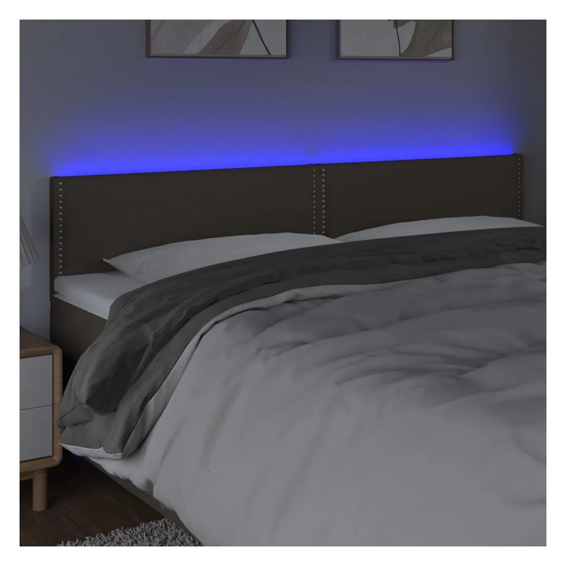 Cette tête de lit à LED classique, au design élégant, donne à votre cadre de lit une touche de modernité étonnante et convient parfaitement à toute chambre à coucher. Tissu durable : le tissu présente un aspect simple et épuré, et il est respirant et durable.LED colorée : apportez de l'éclairage dans l'obscurité avec des lumières LED colorées !Hauteur réglable : la tête de lit est réglable en hauteur selon vos préférences.Excellent soutien : la tête de lit vous offre un excellent soutien du dos lorsque vous êtes assis dans votre lit pour lire ou regarder la télévision.Bande à LED découpable : cette bande à LED flexible peut être ajustée en longueur. Le symbole des ciseaux indique où la bande peut être coupée en toute sécurité sans l'endommager. Remarque :Seule la partie avec un symbole de ciseaux peut être coupée et seule la partie avec l'USB continuera à fonctionner comme avant.Chaque produit est livré avec un manuel de montage dans la boîte pour un montage facile.Ce produit est doté d'un connecteur USB, mais la source d'alimentation certifiée de USB 5V n'est pas incluse.