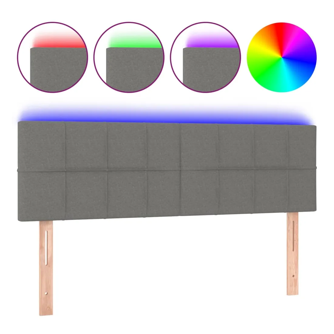 Cette tête de lit à LED classique, au design élégant, donne à votre cadre de lit une touche de modernité étonnante et convient parfaitement à toute chambre à coucher. Tissu durable : le tissu présente un aspect simple et épuré, et il est respirant et durable. LED colorée : apportez de l'éclairage dans l'obscurité avec des lumières LED colorées ! Hauteur réglable : la tête de lit est réglable en hauteur selon vos préférences. Excellent soutien : la tête de lit vous offre un excellent soutien du dos lorsque vous êtes assis dans votre lit pour lire ou regarder la télévision. Bande à LED découpable : cette bande à LED flexible peut être ajustée en longueur. Le symbole des ciseaux indique où la bande peut être coupée en toute sécurité sans l'endommager. Remarque : Seule la partie avec un sy