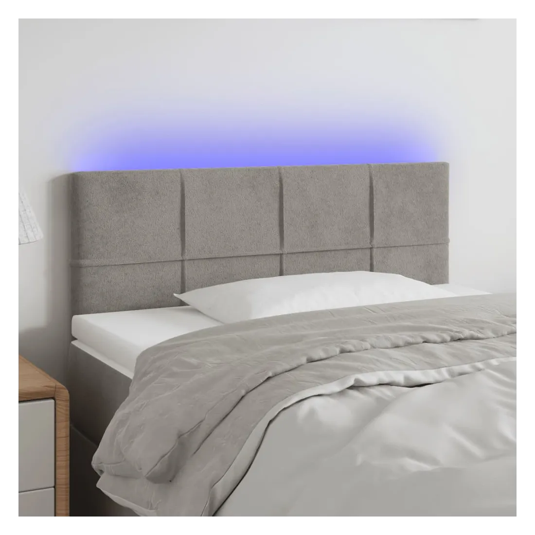 Cette tête de lit à LED classique, au design élégant, donne à votre cadre de lit une touche de modernité étonnante et convient parfaitement à toute chambre à coucher. Velours doux : le velours est un tissu doux et luxueux qui se reconnaît à son tas dense de fibres uniformément coupées qui ont une touche lisse. Le tissu en velours présente un toucher doux distinctif, ce qui le rend confortable au toucher.LED colorée : apportez de l'éclairage dans l'obscurité avec des lumières LED colorées !Hauteur réglable : la tête de lit est réglable en hauteur selon vos préférences.Excellent soutien : la tête de lit vous offre un excellent soutien du dos lorsque vous êtes assis dans votre lit pour lire ou regarder la télévision.Bande à LED découpable : cette bande à LED flexible peut être ajustée en longueur. Le symbole des ciseaux indique où la bande peut être coupée en toute sécurité sans l'endommager. Remarque :Seule la partie avec un symbole de ciseaux peut être coupée et seule la partie avec l'USB continuera à fonctionner comme avant.Chaque produit est livré avec un manuel de montage dans la boîte pour un montage facile.Ce produit est doté d'un connecteur USB, mais la source d'alimentation certifiée de USB 5V n'est pas incluse.