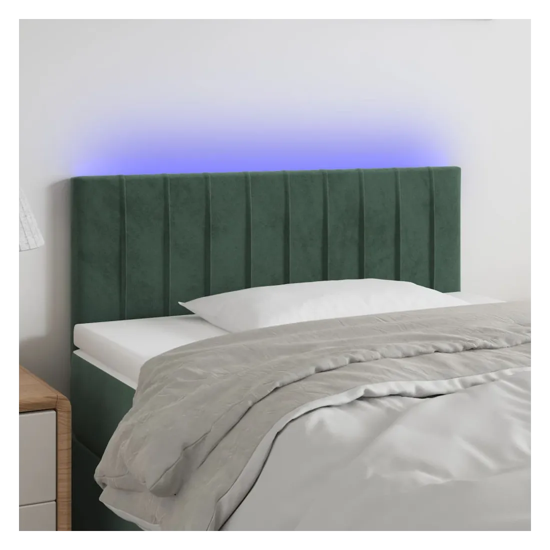 Cette tête de lit à LED classique, au design élégant, donne à votre cadre de lit une touche de modernité étonnante et convient parfaitement à toute chambre à coucher. Velours doux : le velours est un tissu doux et luxueux qui se reconnaît à son tas dense de fibres uniformément coupées qui ont une touche lisse. Le tissu en velours présente un toucher doux distinctif, ce qui le rend confortable au toucher. LED colorée : apportez de l'éclairage dans l'obscurité avec des lumières LED colorées ! Hauteur réglable : la tête de lit est réglable en hauteur selon vos préférences. Excellent soutien : la tête de lit vous offre un excellent soutien du dos lorsque vous êtes assis dans votre lit pour lire ou regarder la télévision. Bande à LED découpable : cette bande à LED flexible peut être ajustée