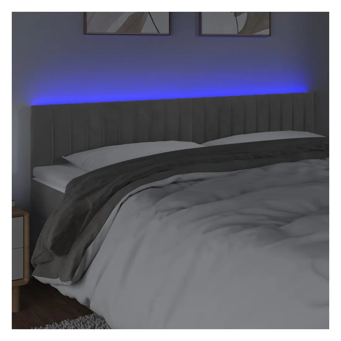 Cette tête de lit à LED classique, au design élégant, donne à votre cadre de lit une touche de modernité étonnante et convient parfaitement à toute chambre à coucher. Velours doux : le velours est un tissu doux et luxueux qui se reconnaît à son tas dense de fibres uniformément coupées qui ont une touche lisse. Le tissu en velours présente un toucher doux distinctif, ce qui le rend confortable au toucher.LED colorée : apportez de l'éclairage dans l'obscurité avec des lumières LED colorées !Hauteur réglable : la tête de lit est réglable en hauteur selon vos préférences.Excellent soutien : la tête de lit vous offre un excellent soutien du dos lorsque vous êtes assis dans votre lit pour lire ou regarder la télévision.Bande à LED découpable : cette bande à LED flexible peut être ajustée en longueur. Le symbole des ciseaux indique où la bande peut être coupée en toute sécurité sans l'endommager. Remarque :Seule la partie avec un symbole de ciseaux peut être coupée et seule la partie avec l'USB continuera à fonctionner comme avant.Chaque produit est livré avec un manuel de montage dans la boîte pour un montage facile.Ce produit est doté d'un connecteur USB, mais la source d'alimentation certifiée de USB 5V n'est pas incluse.